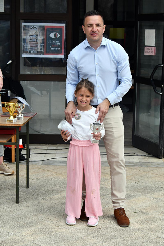 У дисциплини преношење јајета кашиком, у категорији до 8 година: