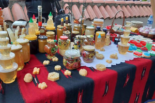 У дворишту Шоп Ђокићеве куће, јуче је организвана Изложба домаћег ајвара, зимнице, меда, вина и ракије.