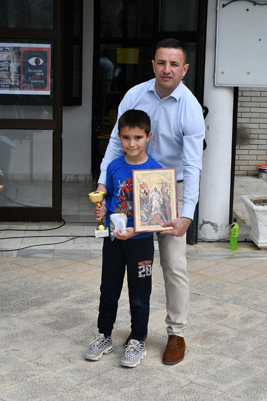 У дисциплини преношење јајета кашиком, у категорији до 8 година: